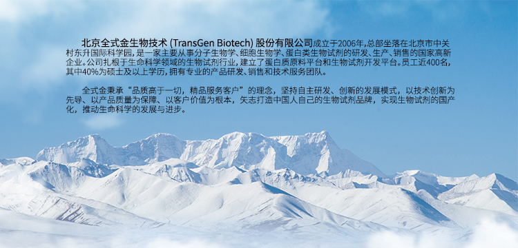 - ? 2006年3月21日,北京全式金生物技術(shù)有限公司正式成立! 50余平米的實(shí)驗(yàn)室,承載了成就中國(guó)生命科學(xué)的夢(mèng)想。全式金,從此揚(yáng)帆起航!