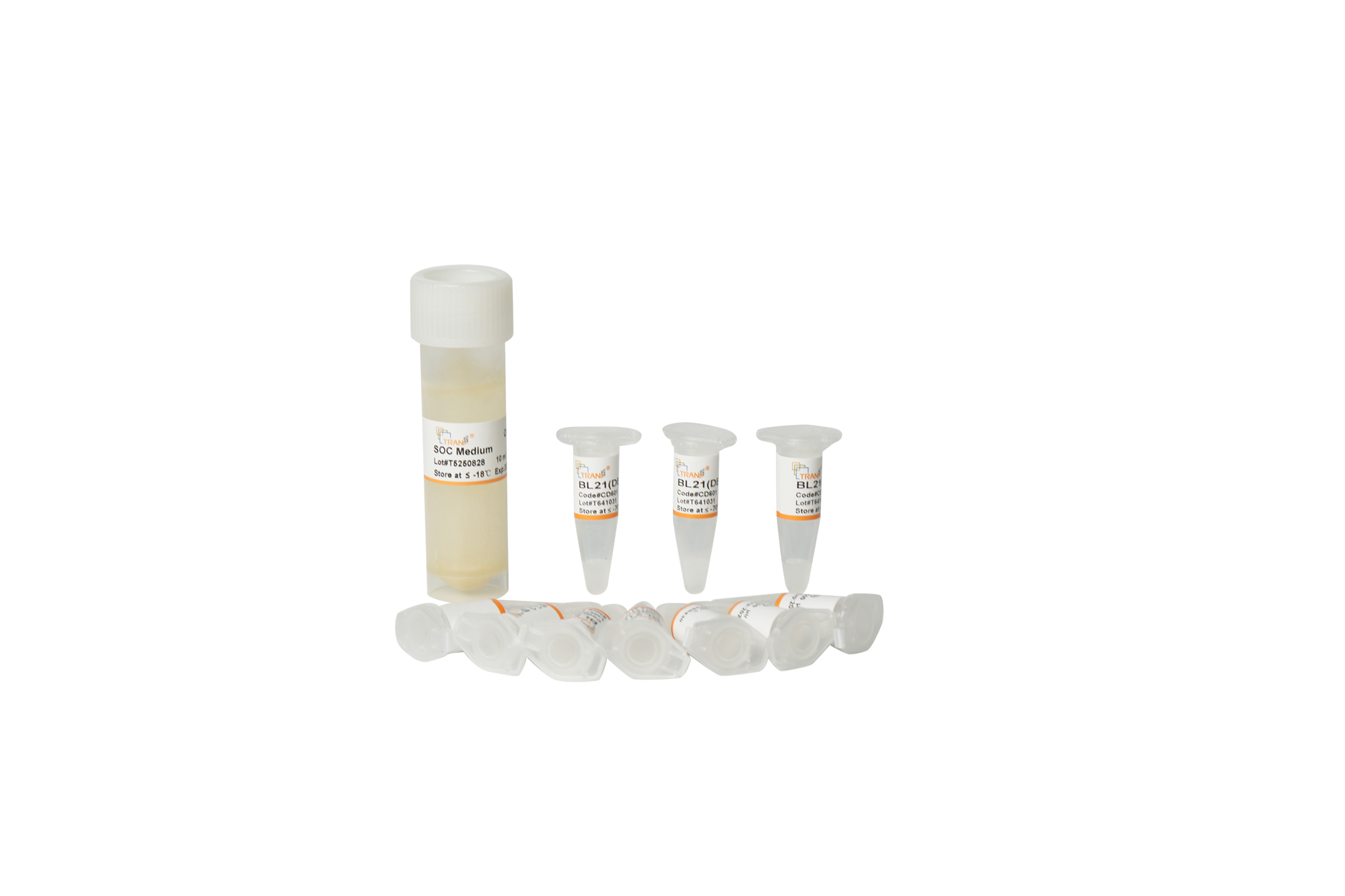 Trans BL21(DE3)化學(xué)感受態(tài)細(xì)胞經(jīng)特殊工藝制作,可用于DNA的化學(xué)轉(zhuǎn)化。使用pUC19質(zhì)粒DNA檢測,轉(zhuǎn)化效率高達(dá)107 cfu/μg DNA。使用Control Plasmid I (Amp+)用于檢測細(xì)胞是否具有表達(dá)功能,表達(dá)蛋白大小為25 kDa。