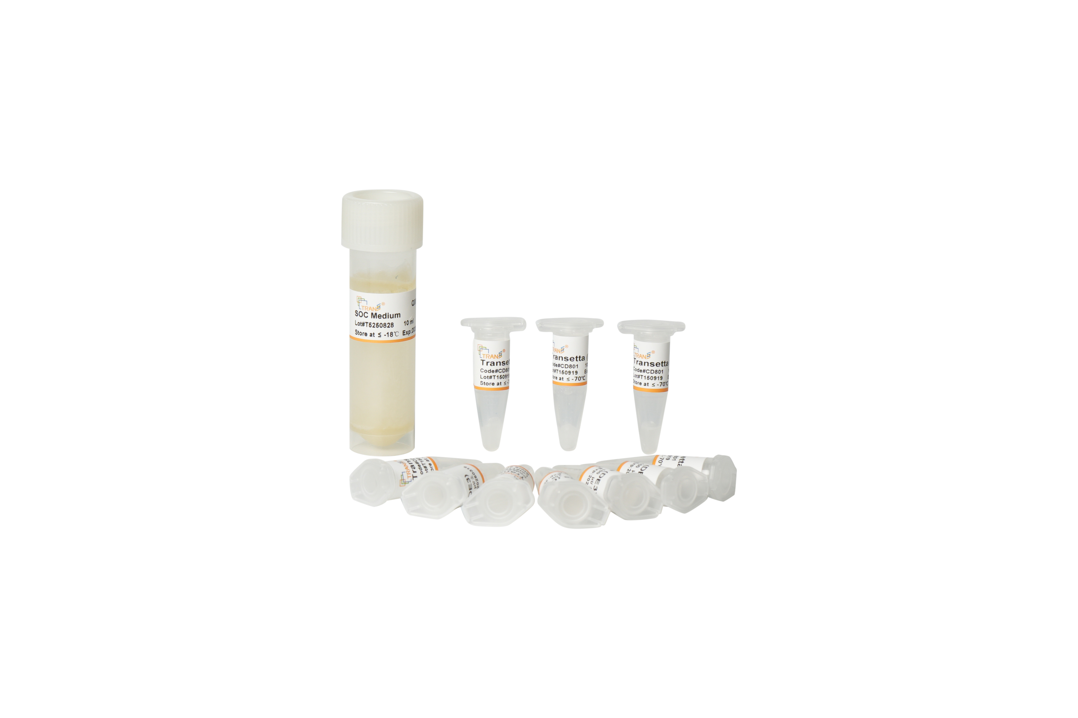 Transetta(DE3)是采用進口菌株,特殊工藝制作,可用于DNA的化學轉(zhuǎn)化。細胞具有氯霉素(Camr)抗性。使用pUC19質(zhì)粒DNA檢測,轉(zhuǎn)化效率可達107 cfu/μg DNA。使用Control Plasmid I (Amp+)用于檢測細胞是否具有表達功能,表達蛋白大小為25 kDa。