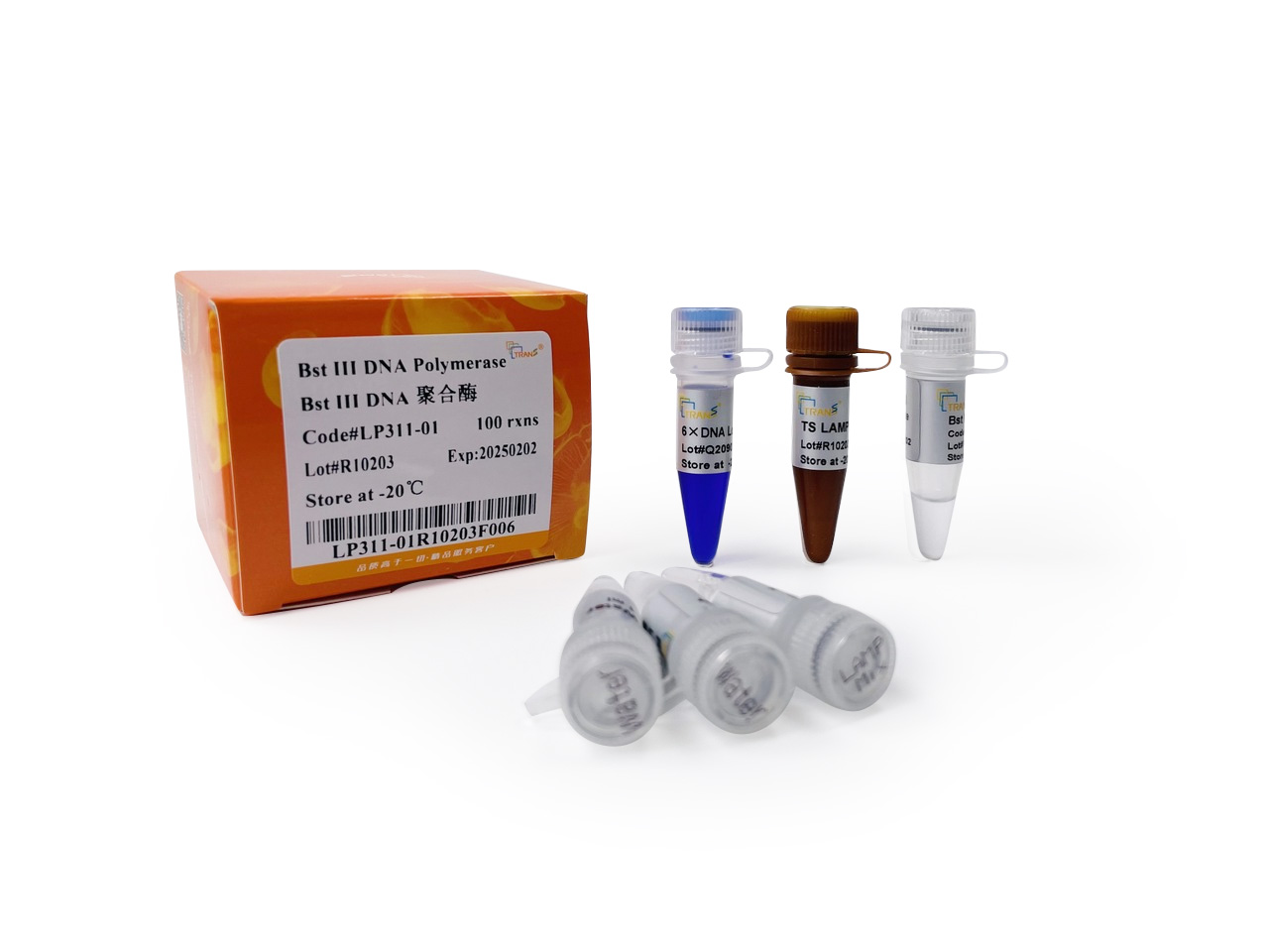 本產(chǎn)品包含Bst III DNA聚合酶、5×LAMP Reaction Mix、熒光染料TS LAMP Green,只需自備模板、引物。其中Bst III為Bst  II DNA聚合酶的升級版,可以進(jìn)行以DNA或RNA為模板的LAMP反應(yīng),用于RT-LAMP反應(yīng)時不建議再加入反轉(zhuǎn)錄酶。5×LAMP Reaction Mix為優(yōu)化的預(yù)混反應(yīng)液,已包含反應(yīng)所需的MgSO4、dNTPs等組分,無需另外加入。
