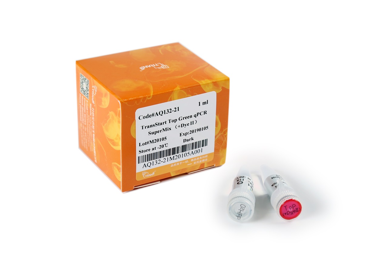 本產(chǎn)品含雙封閉法TransStart? TopTaq新型熱啟動(dòng)酶、優(yōu)化的雙陽(yáng)離子緩沖液、SYBR Green I 熒光染料、dNTPs、PCR增強(qiáng)劑、PCR穩(wěn)定劑和Passive Reference Dye I / II。本產(chǎn)品濃度為2×,使用時(shí)只需加入模板、引物和水,使其工作濃度為1×,即可進(jìn)行反應(yīng)。
