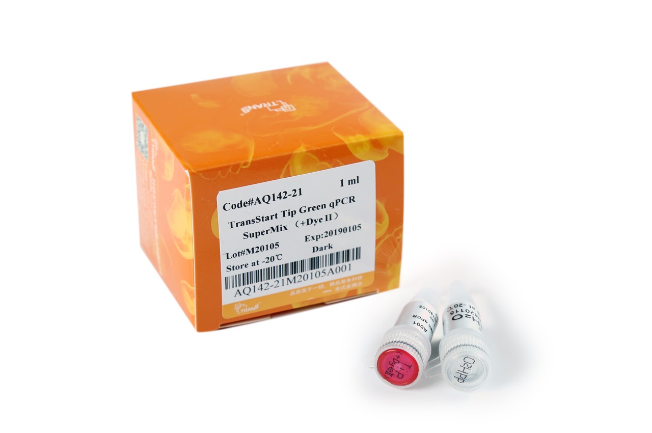本產(chǎn)品包含全封閉法TransStart? TipTaq新型熱啟動(dòng)酶 ( 利用三種蛋白封閉模板和引物,利用特殊的化學(xué)物質(zhì)和DNA聚合酶結(jié)合,封閉DNA聚合酶活性 )、優(yōu)化的雙陽(yáng)離子緩沖液、EvaGreen熒光染料、dNTPs、PCR增強(qiáng)劑、PCR穩(wěn)定劑和Passive Reference Dye I / II。本產(chǎn)品濃度為2×,使用時(shí)只需加入模板、引物和水,使其工作濃度為1×,即可進(jìn)行反應(yīng)。