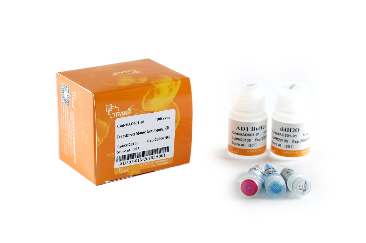 本試劑盒采用獨(dú)特的裂解液裂解小鼠基因分型常用的耳朵、腳趾、尾巴(新鮮或凍存組織)等組織,所得裂解物無(wú)需純化即可直接作為模板,用高效率、抗抑制的2×TransDirect? Mouse Genotyping SuperMix (+dye) 進(jìn)行擴(kuò)增,擴(kuò)增產(chǎn)物可直接電泳點(diǎn)樣。